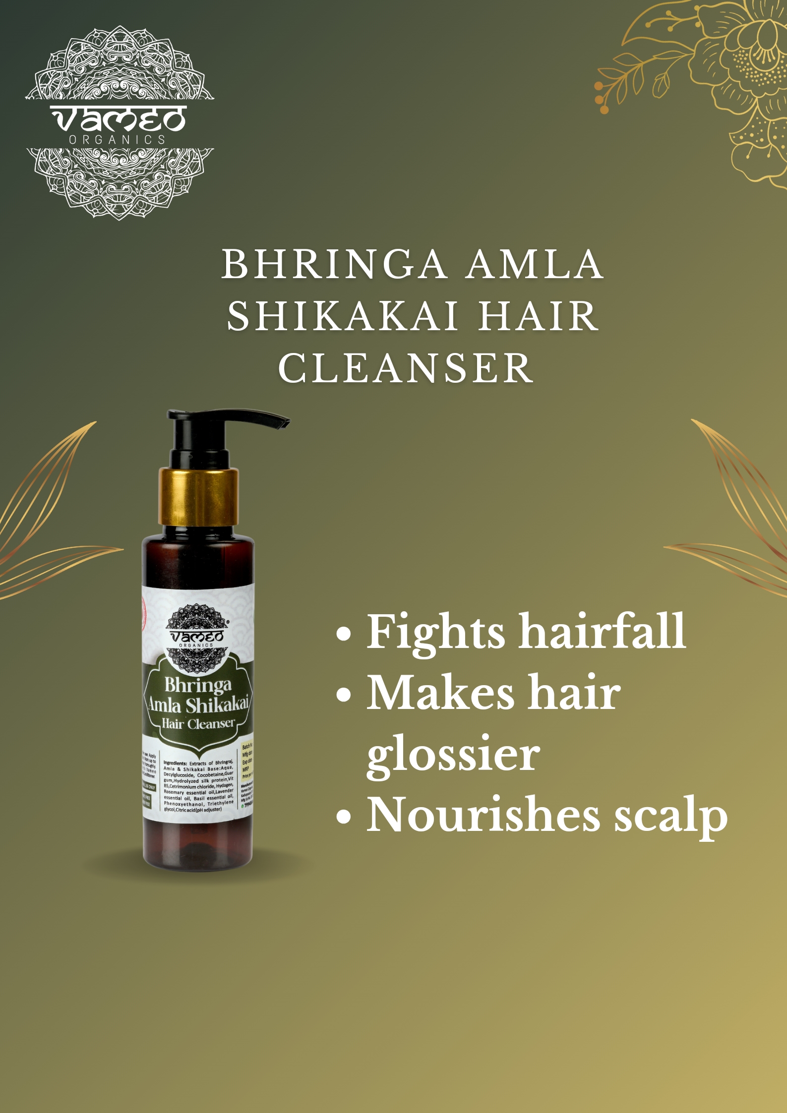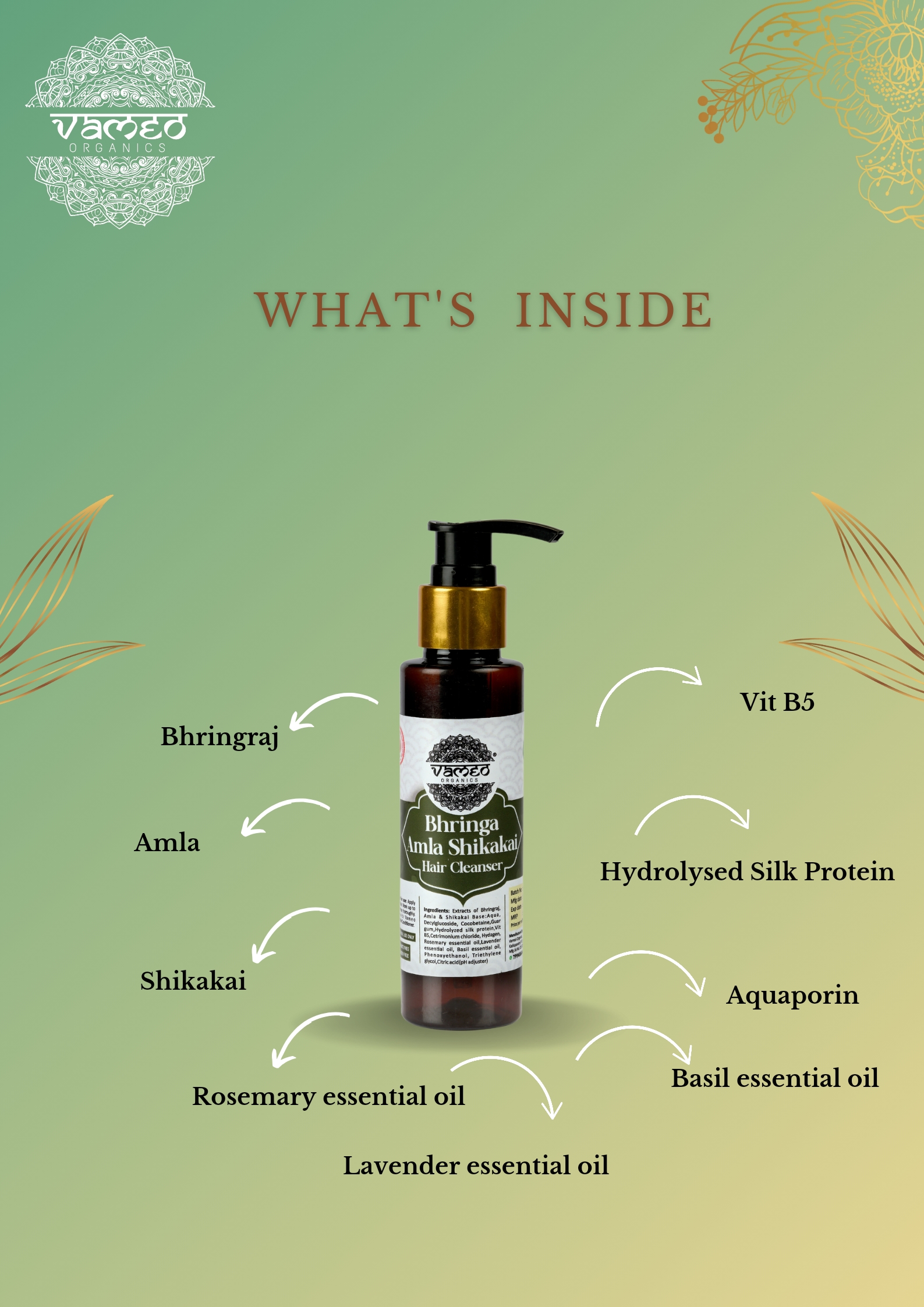 Apply our Bhringa Amla Shikakai Hair Cleanser over wet hair. Work it up to a luxurious lather, ensuring it covers your scalp and hair thoroughly. Rinse off the cleanser thoroughly with water. Follow this revitalizing cleanse with our Hair Conditioner to lock in moisture and leave your hair feeling silky and nourished.