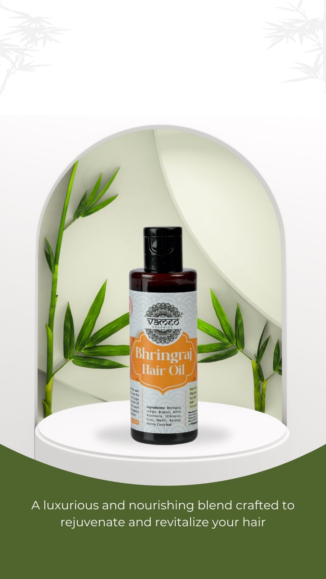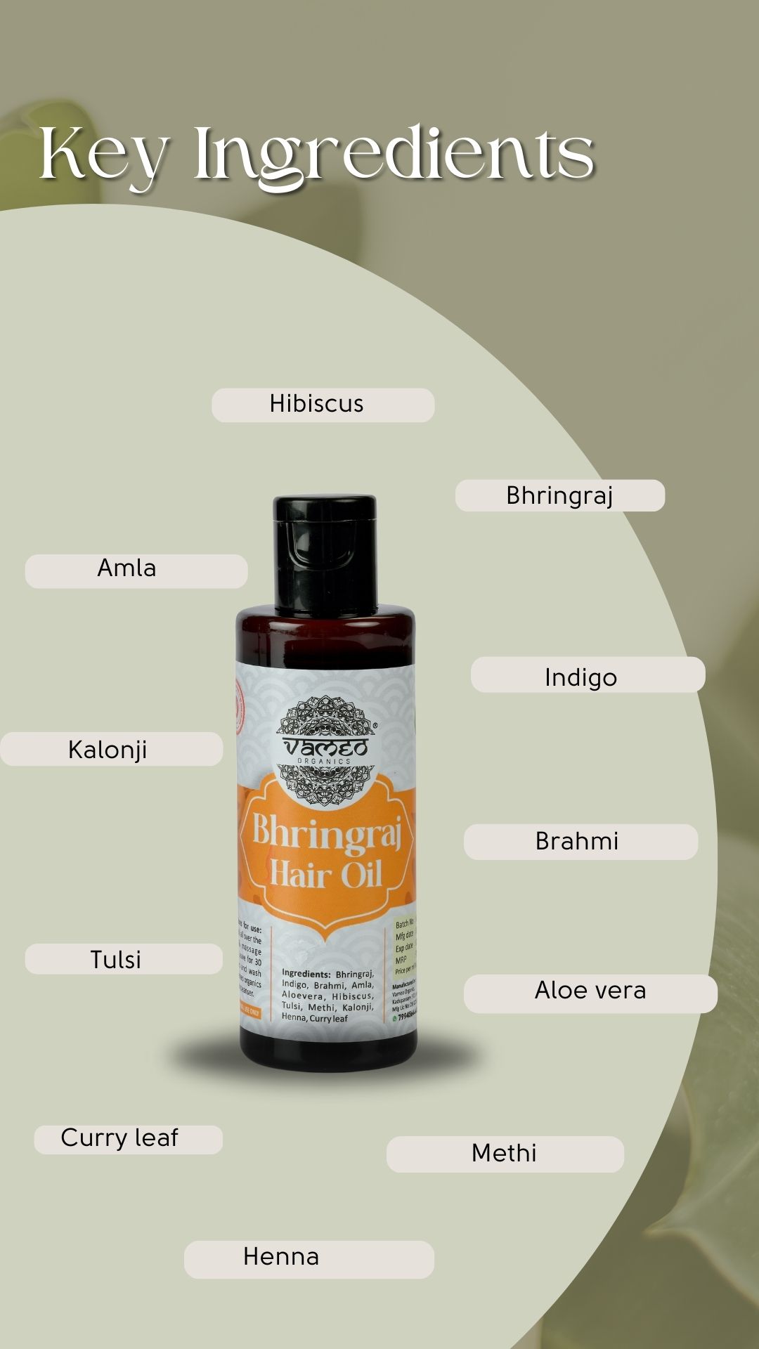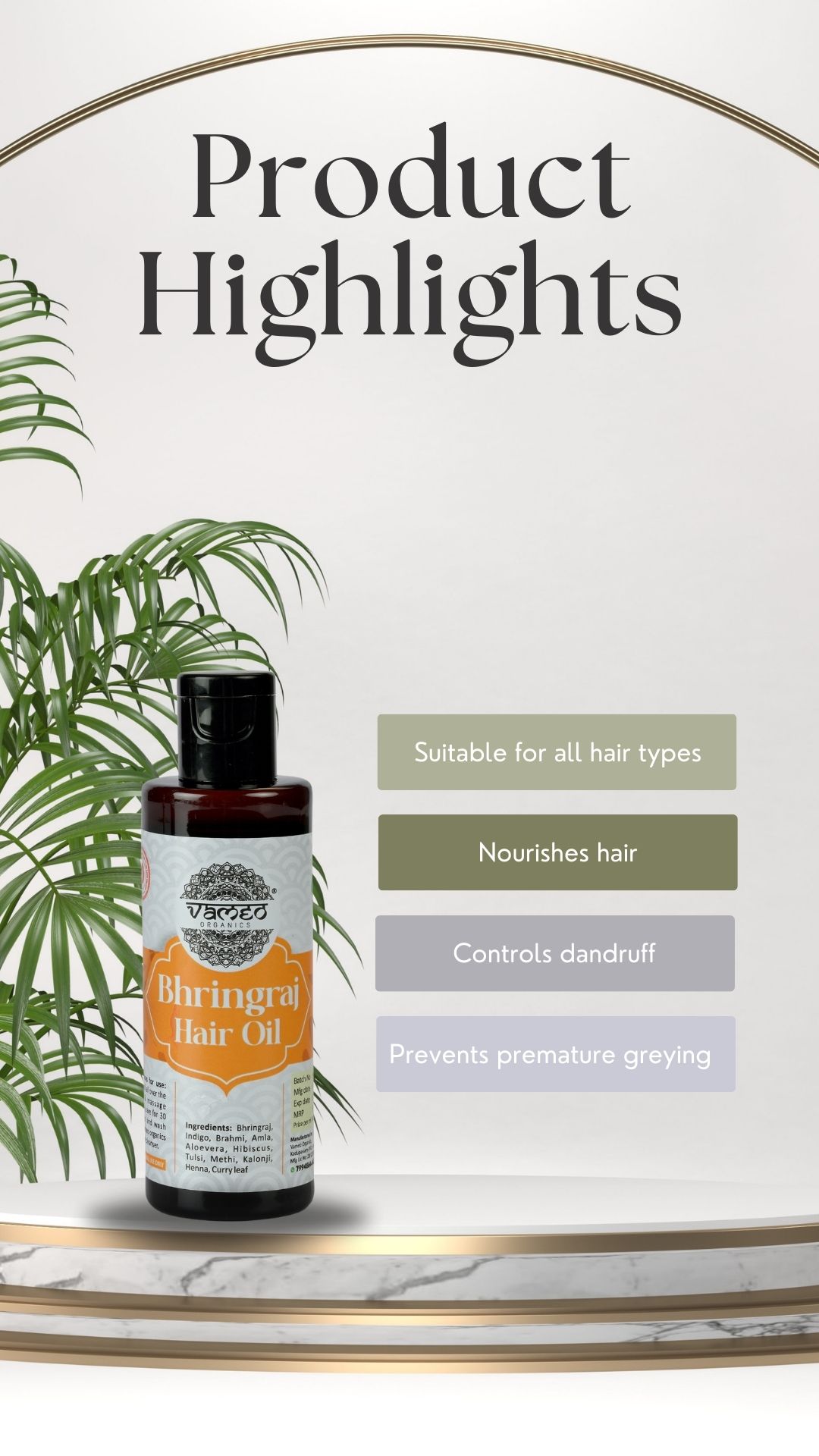 Our Bhringraj hair oil is meticulously crafted with a fusion of coconut oil and a potent blend of herbs